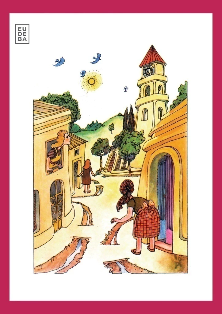En un pueblo de pocas casas, con una escuela, una plaza con muchas flores, también habita un enorme reloj, arriba de una torre muy alta, que todos los habitantes lo miran cada día, para saber si prepararan la comida o si dejan de estudiar; hasta que un buen día una nube aventurera lo cubre absolutamente con su bruma.