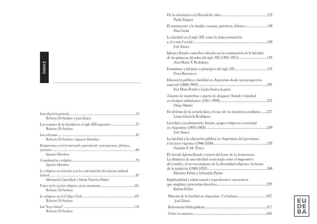 La laicidad ha funcionado como una narrativa, con efectos institucionales, sociales y simbólicos concretos en las dimensiones pública y privada de la vida de las personas y de las sociedades. Es un discurso que posee carácter epistémico y que, por lo tanto, al tiempo que describe un ordenamiento del mundo, lo construye. Aquí pensamos a la laicidad como una doble frontera: entre lo religioso y lo secular, y entre lo privado y lo público. Pero, como toda frontera, separa tanto como une. Establece un espacio donde ninguna de estas esferas pudo constituir contornos rígidos e inamovibles, separados y sin contacto entre sí. La historia de la laicidad argentina está marcada por conflictos y negociaciones en los que incidieron diversos factores: la debilidad o la fortaleza relativas de la Iglesia católica, sus tensiones internas, sus cambios a nivel global y local, y el grado de estabilidad del sistema político. Es así como en las últimas cuatro décadas la opinión pública argentina se vio inmersa en múltiples debates que remitieron directa o indirectamente al problema de la laicidad del Estado: el divorcio vincular, los subsidios que recibe la Iglesia católica, la tensión entre la educación pública y la privada, las políticas de salud sexual reproductiva y la educación sexual.
